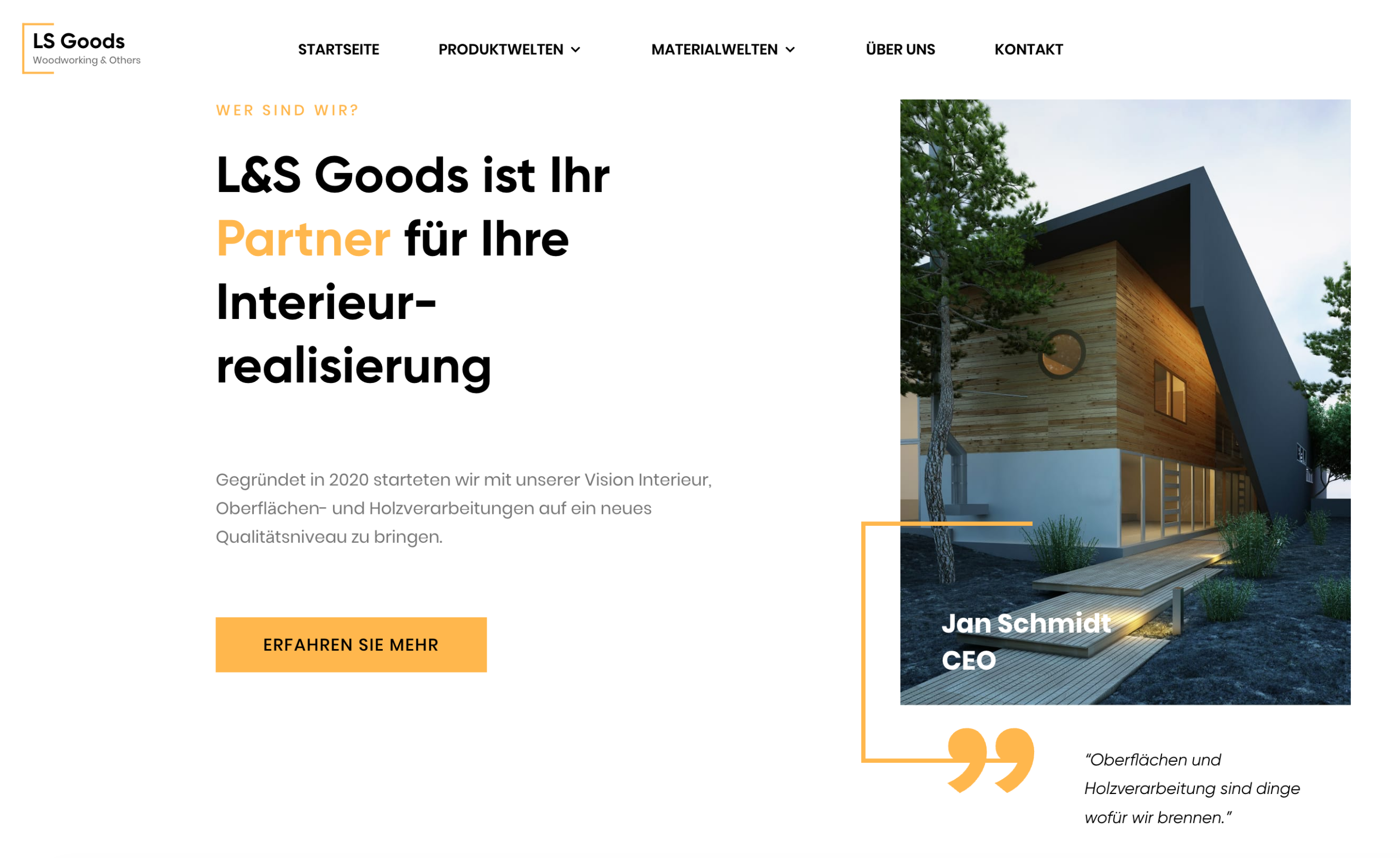 Die L&S Goods GmbH ist Experte für Holz-, Acryl- und Metallverarbeitung und realisiert stark individuelle Interior- und Branding-Projekte. Die Herausforderung: Das Angebot war enorm vielseitig, aber digital weder strukturiert noch erlebbar aufbereitet. Wir haben eine interaktive Website auf Basis von WordPress & Elementor konzipiert und umgesetzt, die das komplexe Leistungsspektrum glasklar übersetzt, Vertrauen aufbaut und als zentraler Einstiegspunkt für neue Kundenanfragen fungiert.